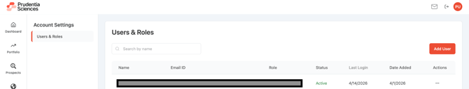- Click Invite User. The user will receive an email from Prudentia Sciences inviting them to set their password and access the platform.